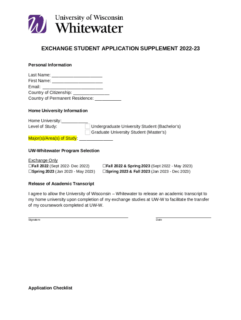 What is PDF Exchange Student Application This serves to provide ... - UNCP Form?