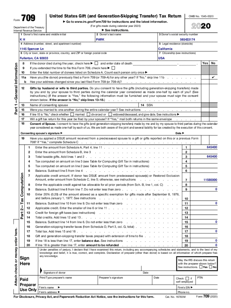 Form709United States Gift (and Generation Skipping Transfer) Tax Return Got www.irs.gov/Form709 for instructions and the latest information. Department of the Treasury Internal Revenue Service 1 Donors