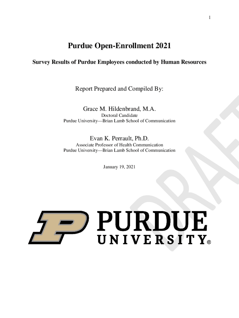 1Purdue OpenEnrollment 2021 Survey Results of Purdue Employees conducted by Human ResourcesReport Prepared and Compiled By: Grace M. Hildebrand, M.A. Doctoral Candidate Purdue University Brian Lamb