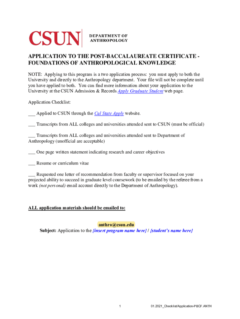Get the free APPLICATION TO THE POST-BACCALAUREATE CERTIFICATE ...