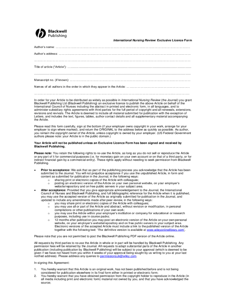 Get the free International Nursing Review: Exclusive Licence Form - Blackwell Publishing