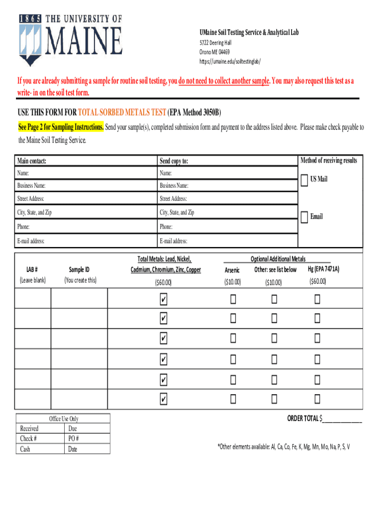 Get the free USE THIS FORM FOR TOTAL SORBED METALS TEST (EPA ...