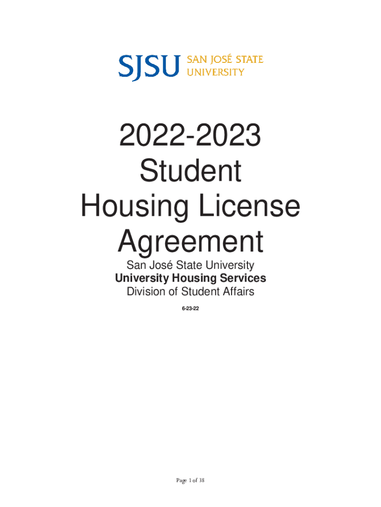 20222023 Student Housing License Agreement San Jo's State University Housing Services Division of Student Affairs 1 62322Page 1 of 38Table of Contents Important Dates Pages 3 through 5 Terms and Conditions