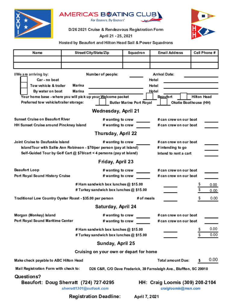 Hosted by Beaufort and Hilton Head Sail & Power Squadrons