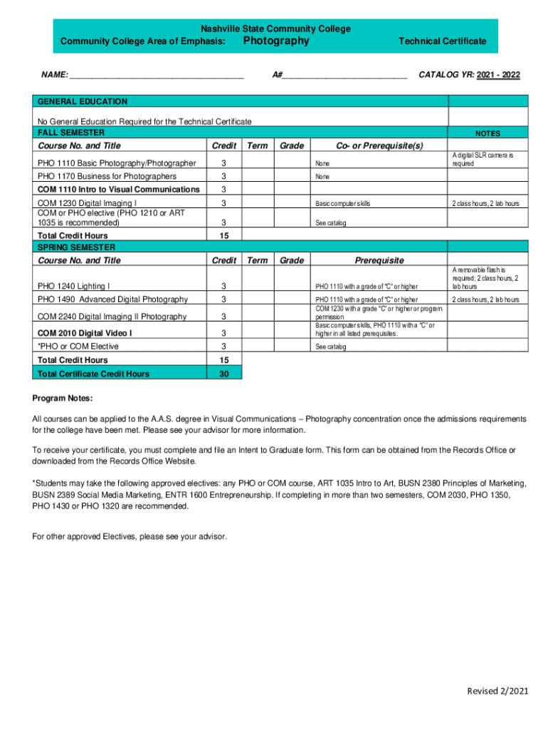 Get the free Nashville State Community College Visual Communications Photography ... - ww2 nscc