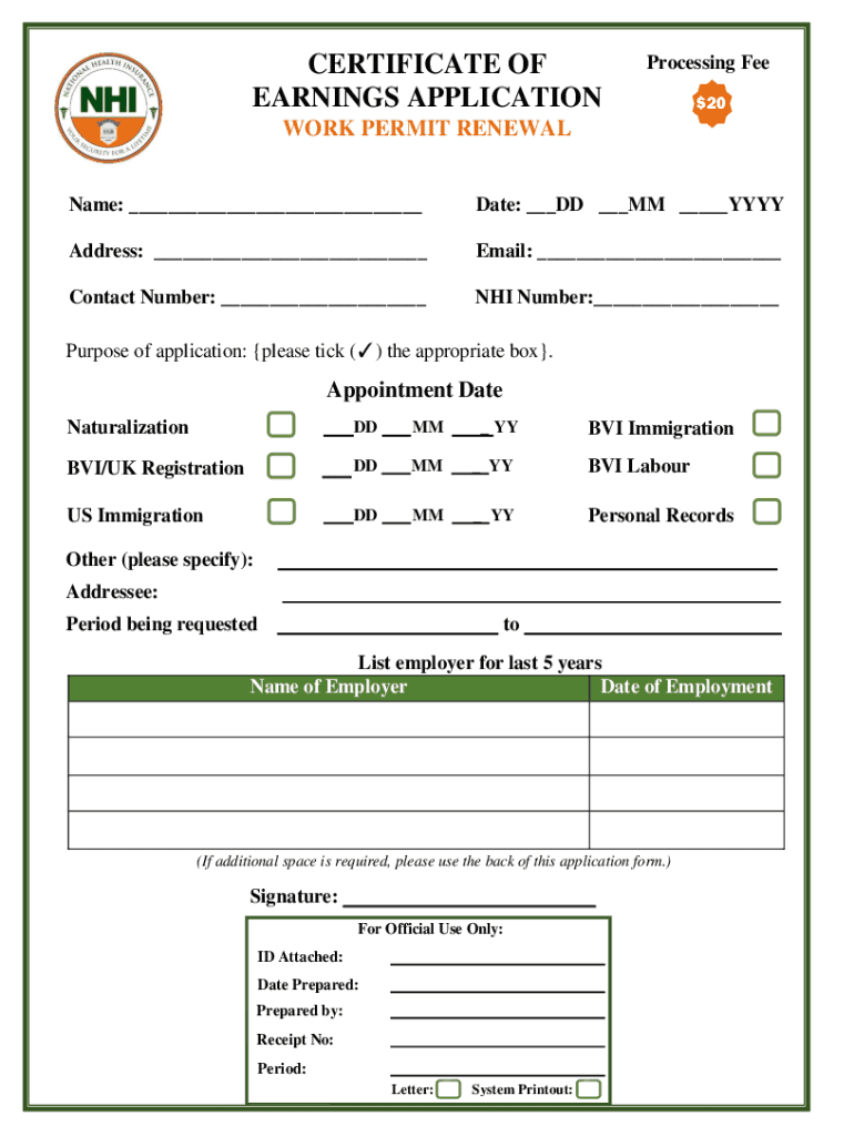 NHI certificate of earnings can be filled out online or in person by providing details of your earnings for the relevant period.