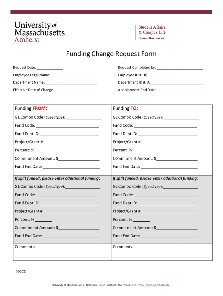 Get the free Funding Change Request Form - UMass Amherst