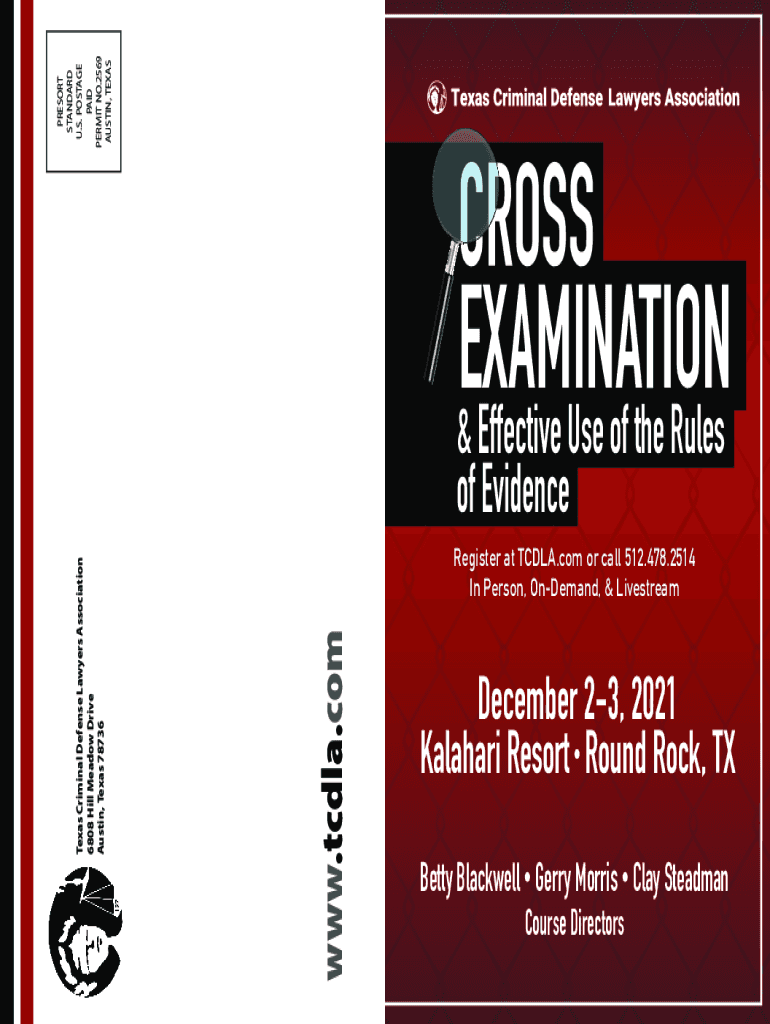 PRESORT STANDARD U.S. POSTAGE PAID PERMIT NO.2569 AUSTIN, TEXASCROSS EXAMINATION & Effective Use of the Rules Register at TCDLA.com or call 512.478.2514 In Person, On-demand, & Livestream.UCLA.com