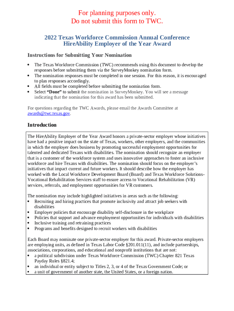 Template www.twc.texas.govworkforce-conference-awards2022 Workforce AwardsTexas Workforce Commission instructions