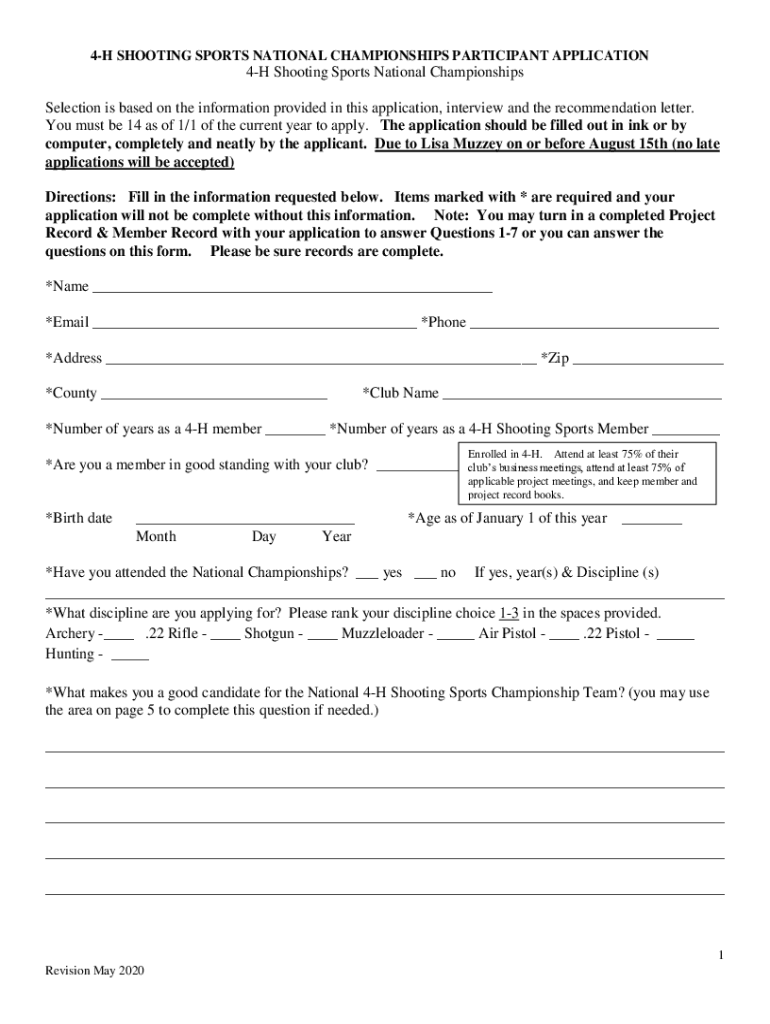 4H SHOOTING SPORTS NATIONAL CHAMPIONSHIPS PARTICIPANT APPLICATION4H Shooting Sports National Championships Selection is based on the information provided in this application, interview and the recommendation