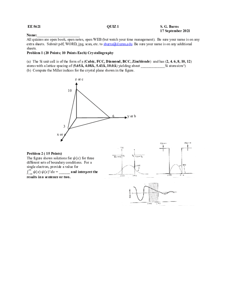 EE 5621QUIZ 1S. G. Burns 17 September 2021Name:___ All quizzes are open book, open notes, open WEB (but watch your time management). Be sure your name is on any extra sheets. Submit PDF, WORD, JPG,