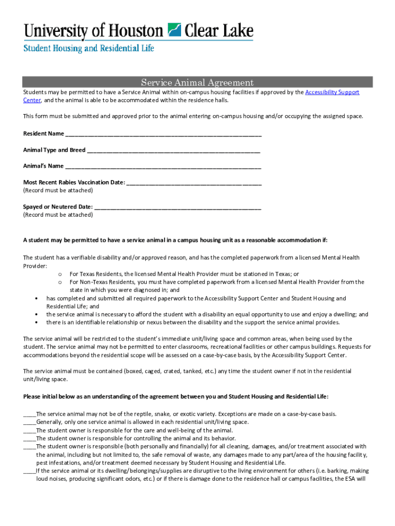 Get the free Service Animal Agreement - uhcl.edu