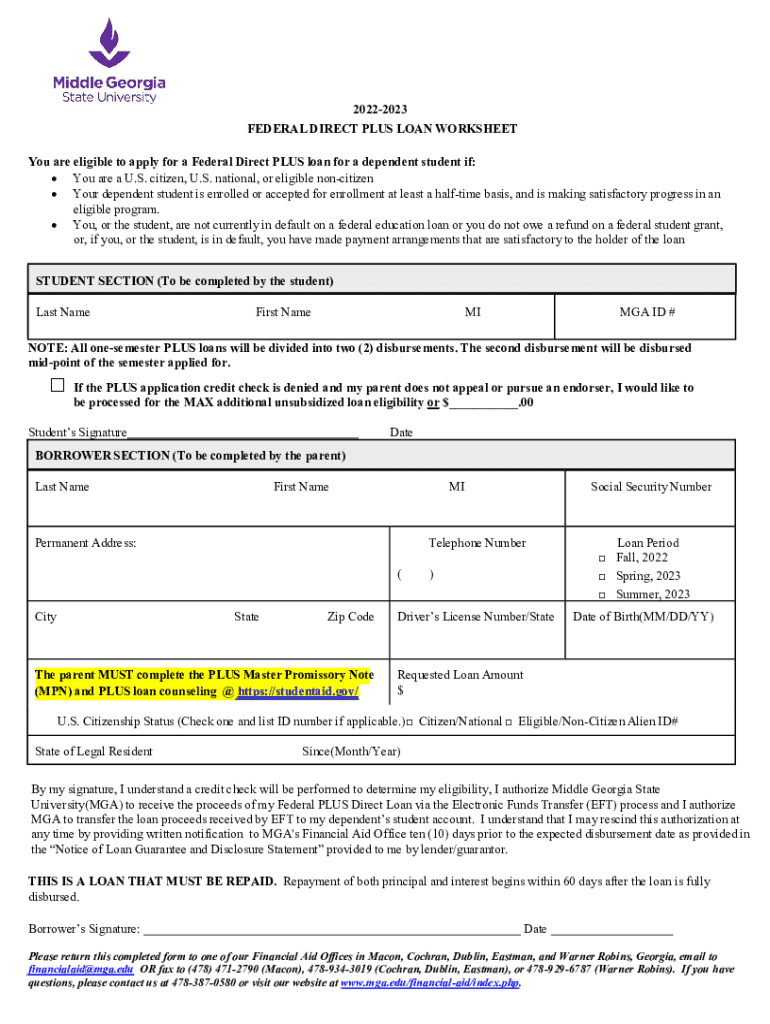 Get the free 2022-2023 FEDERAL DIRECT PLUS LOAN WORKSHEET - Middle Georgia State ...
