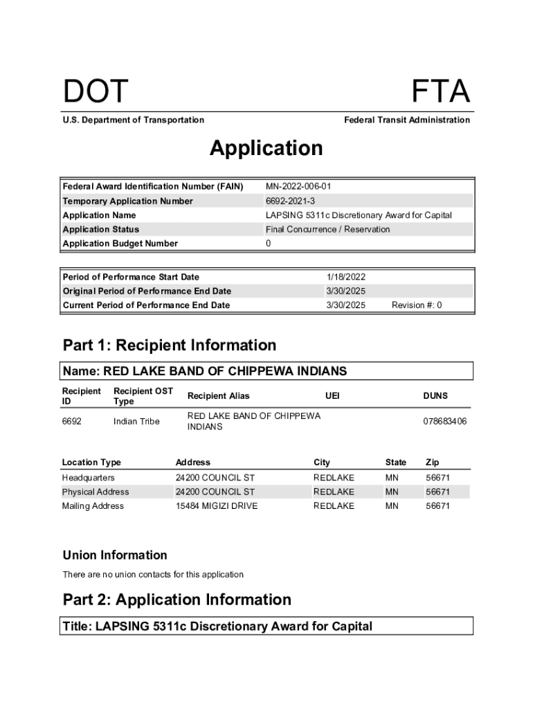 Federal Award Identification Number (FAIN)MN202200601Temporary Application Number669220213Application Relapsing 5311c