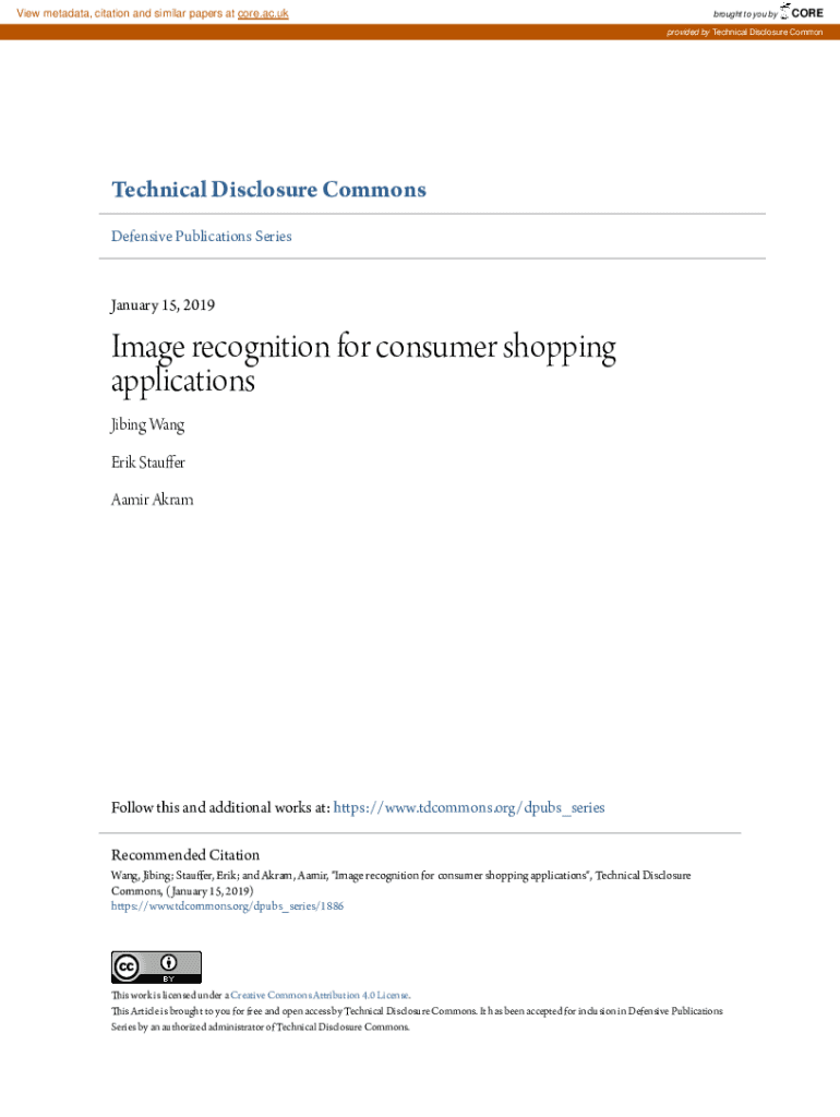 View metadata, citation and similar papers at core.ac.brought to you byCOREprovided by Technical Disclosure CommonTechnical Disclosure Commons Defensive Publications Series January 15, 2019Image recognition