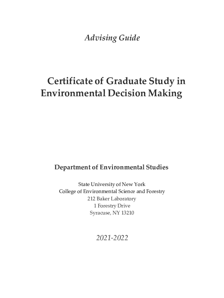Advising GuideCertificate of Graduate Study in Environmental Decision MakingDepartment of Environmental Studies State University of New York College of Environmental Science and Forestry 212 Baker