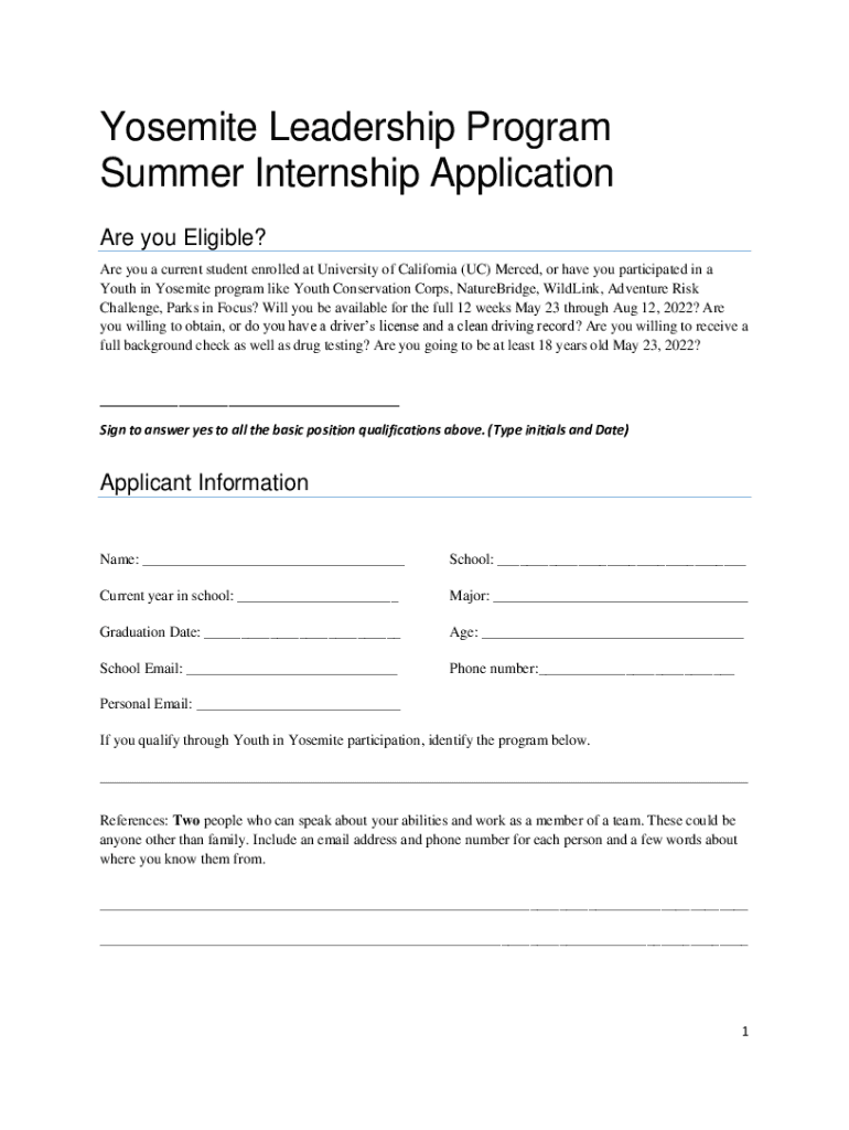 Get the free Yosemite Leadership Program Summer Internship Application