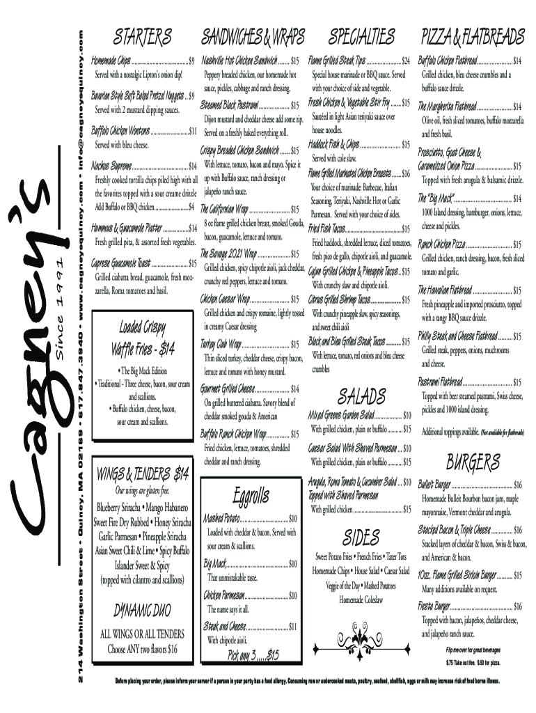 Fill out your cagneysquincycomcontactcontact cagneys restaurantampamp pub online with pdfFiller!
