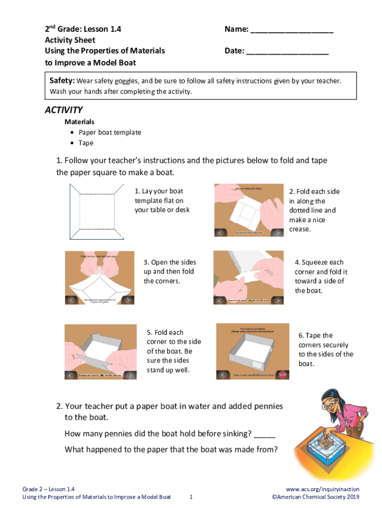 2nd Grade: Lesson 1.4 Activity Sheet Using the Properties of Materials to Improve a Model Hostname: ___ Date: ___Safety: Wear safety goggles, and be sure to follow all safety instructions given by