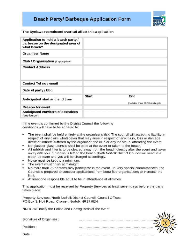 Instructions for the form BEACH PARTY/BARBECUE APPLICATION - North Norfolk