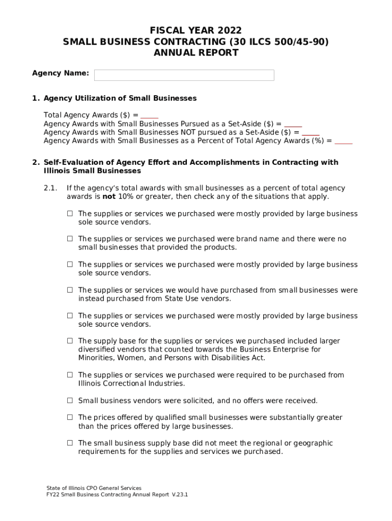 Instructions for the FY22 Small Business Contracting Annual Report - www2 illinois form