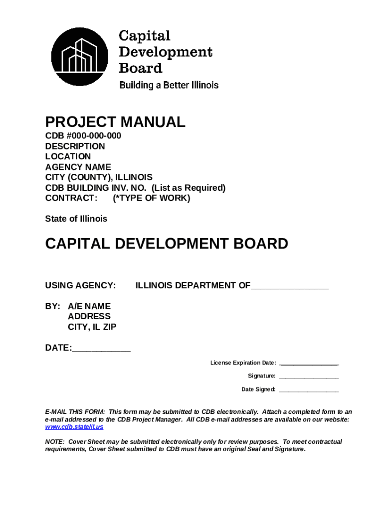 Instructions for the form Project Manual Cover - Illinois - www2 illinois