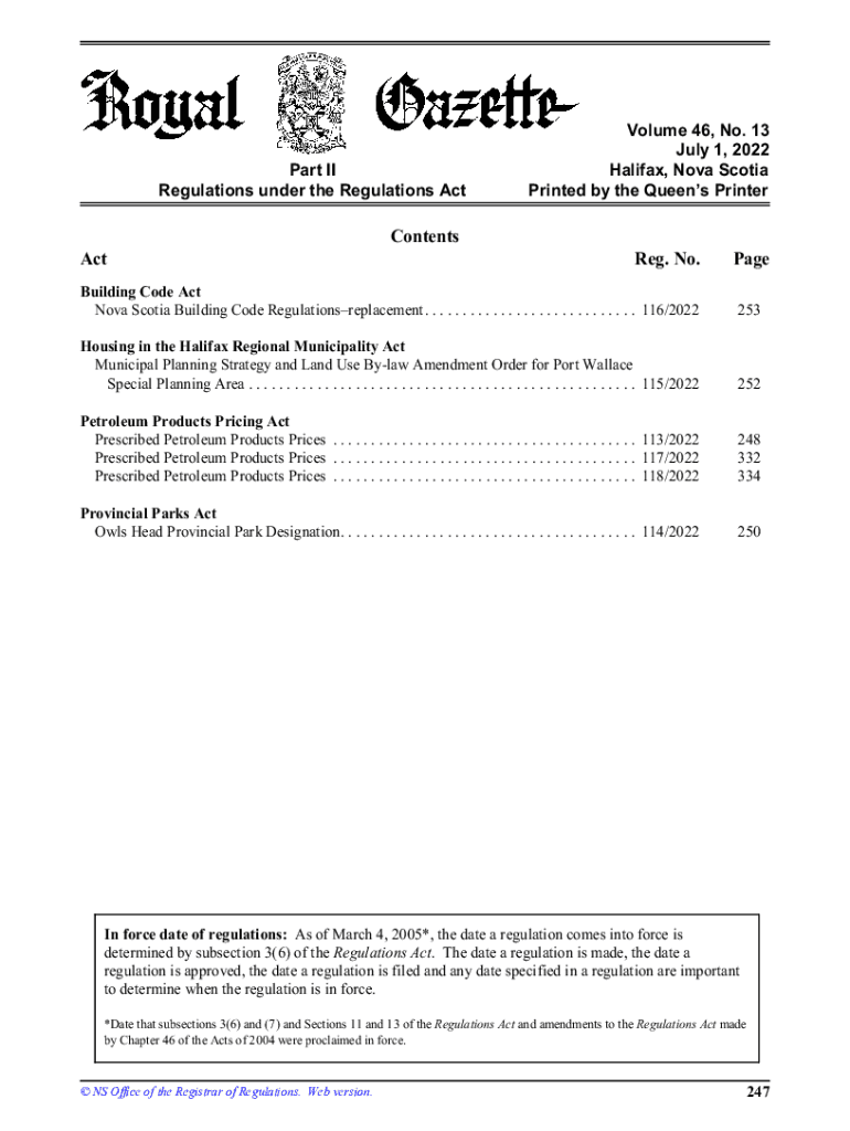 Get the free NS Royal Gazette Part II - Volume 46, No. 13, July 1, 2022
