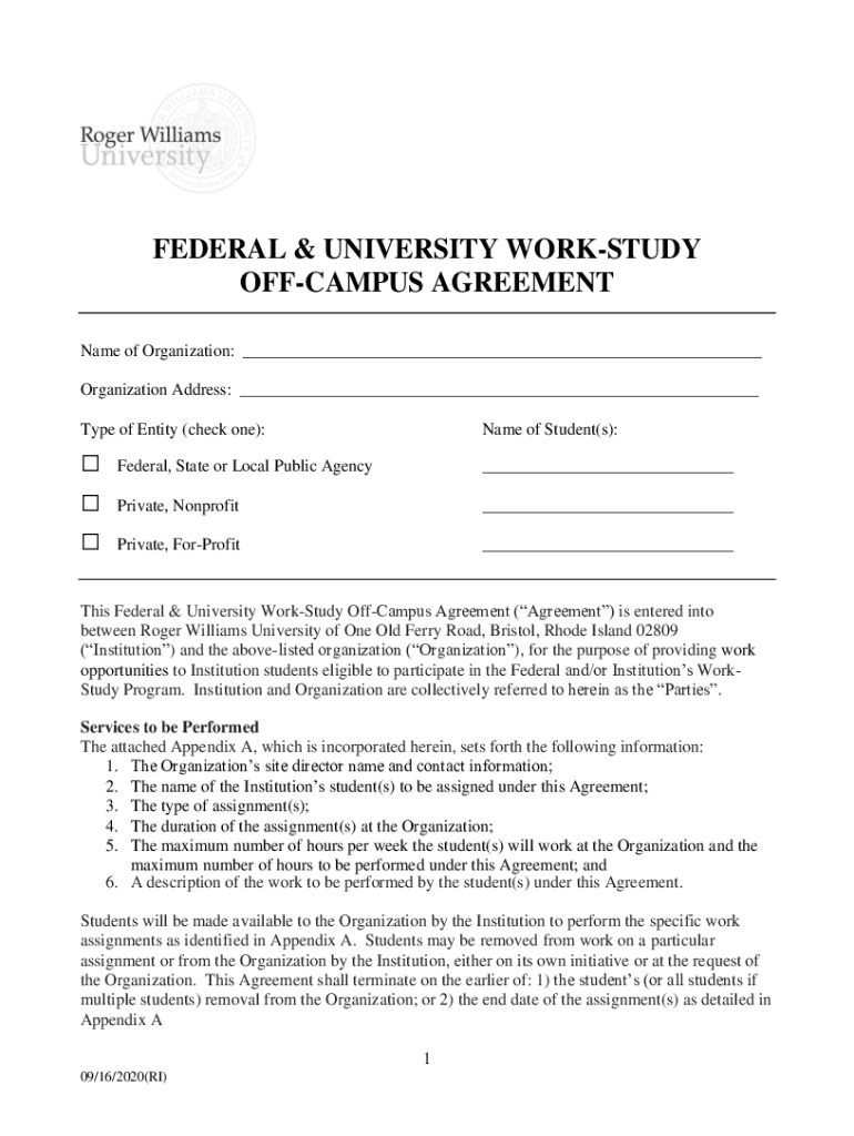 Get the free Federal Work-Study Off-Campus Agreement and Job Placement Form Award ...