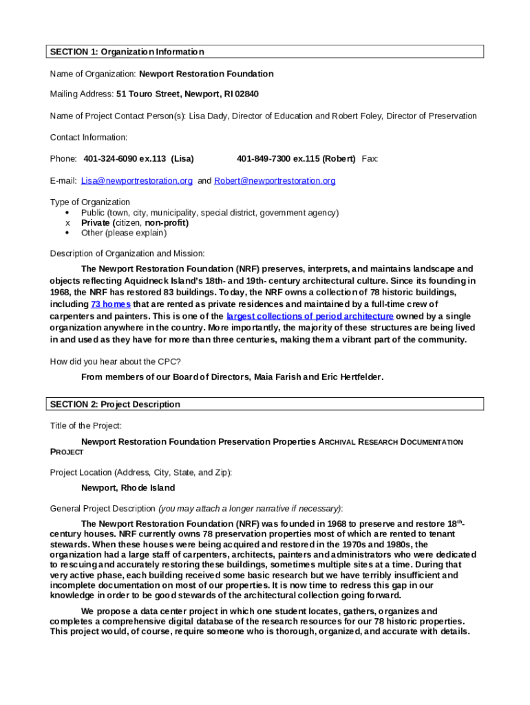 What is Newport Restoration FoundationDedicated to the preservation of ... Form?