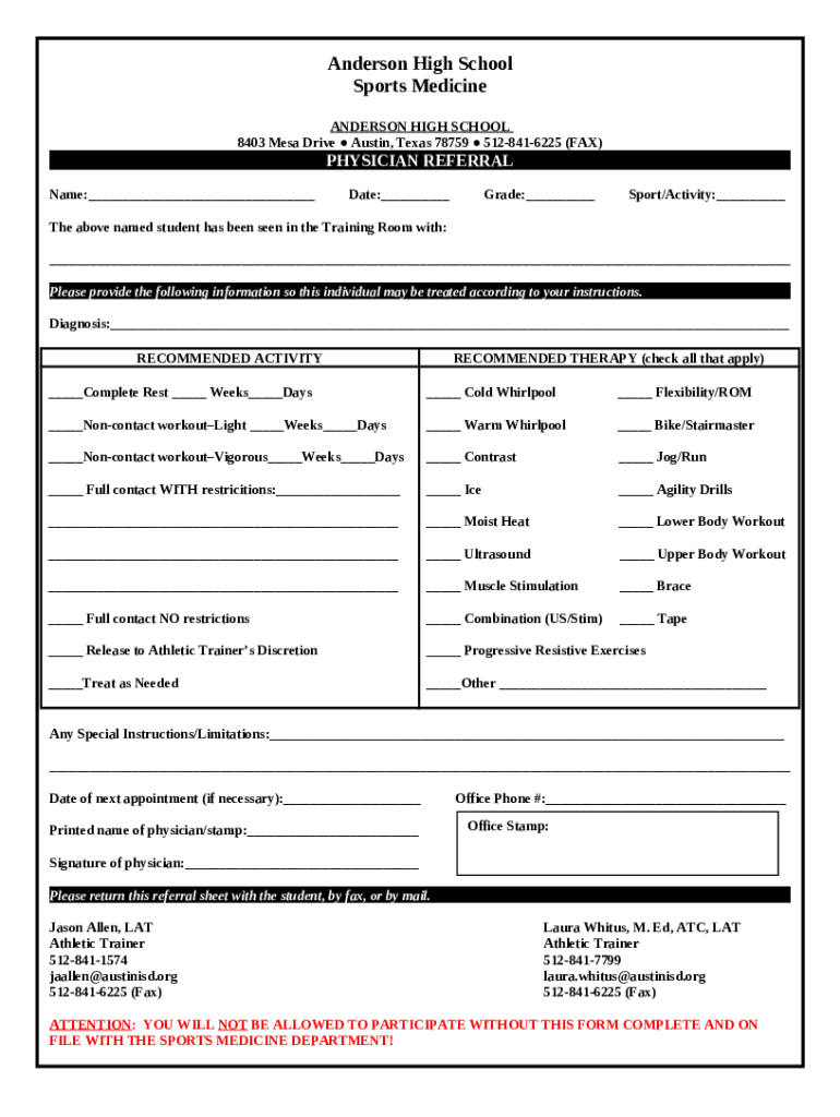 Instructions for the THE WOODLANDS HIGH SCHOOL form
