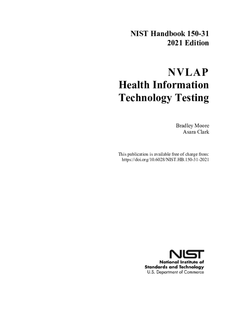 NIST Handbook 15031 2021 EditionNVLAP Health Information Technology Testing Bradley Moore Sara Clerkship publication is available free of charge from: https://doi.org/10.6028/NIST.HB.150312021NIST