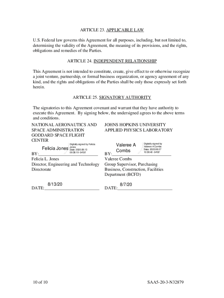 REIMBURSABLE SPACE ACT AGREEMENT BETWEEN THE NATIONAL AERONAUTICS AND SPACE ADMINISTRATION GODDARD SPACE FLIGHT CENTER AND Johns Hopkins UNIVERSITY APPLIED PHYSICS LABORATORY FOR AUGMENTED REALITY
