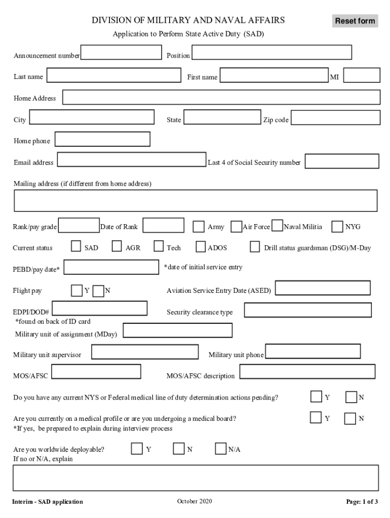 DIVISION OF MILITARY AND NAVAL AFFAIRSReset formalization to Perform State Active Duty (SAD) Announcement numberPositionLast nameFirst nameMIHome Address CityStateZip Wodehouse phone Email addresses