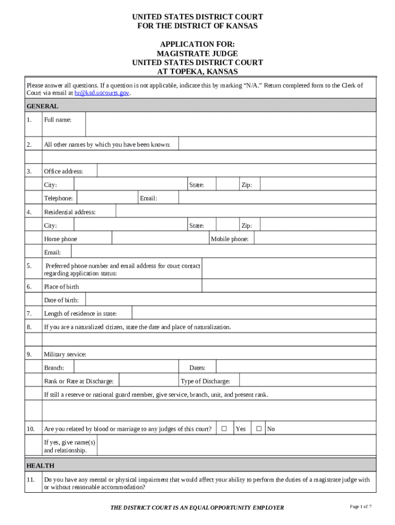 Frequently asked questions about UNITED STATES DISTRICT COURT FOR THE DISTRICT OF COLORADO APPLICATION ... - ksd uscourts template