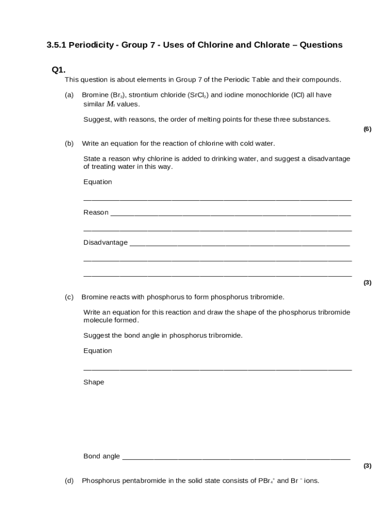 The Group 7the halogens - Group 7 - the halogens - GCSE ChemistryGroup 7the halogens - Group 7 - the halogens - GCSE Chemistryinorganic chemistry: group 7 FlashcardsQuizlet is a writable document that can be filled-out and signed for specific reasons. Then, it is furnished to the actual addressee in order to provide specific info of any kinds. The completion and signing is possible manually or using an appropriate solution like PDFfiller. These applications help to fill out any PDF or Word file online. While doing that, you can edit its appearance according to your requirements and put legit electronic signature. Upon finishing, you send the Group 7the halogens - Group 7 - the halogens - GCSE ChemistryGroup 7the halogens - Group 7 - the halogens - GCSE Chemistryinorganic chemistry: group 7 FlashcardsQuizlet to the recipient or several of them by mail and even fax. PDFfiller provides a feature and options that make your blank printable. It includes a variety of settings when printing out appearance. No matter, how you'll send a form after filling it out - in hard copy or by email - it will always look well-designed and organized. To not to create a new document from scratch every time, make the original form as a template. Later, you will have a rewritable sample.