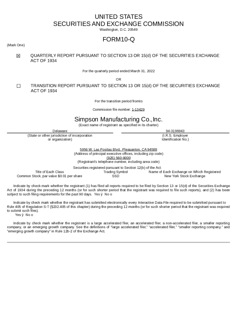 What is Simpson Manufacturing Co., Inc. (. EDGAR Online Pro Form?