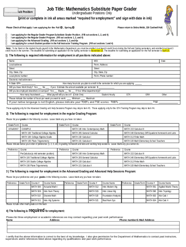 New Job Title: Mathematics Substitute Paper Grader Undergraduate ... template instructions