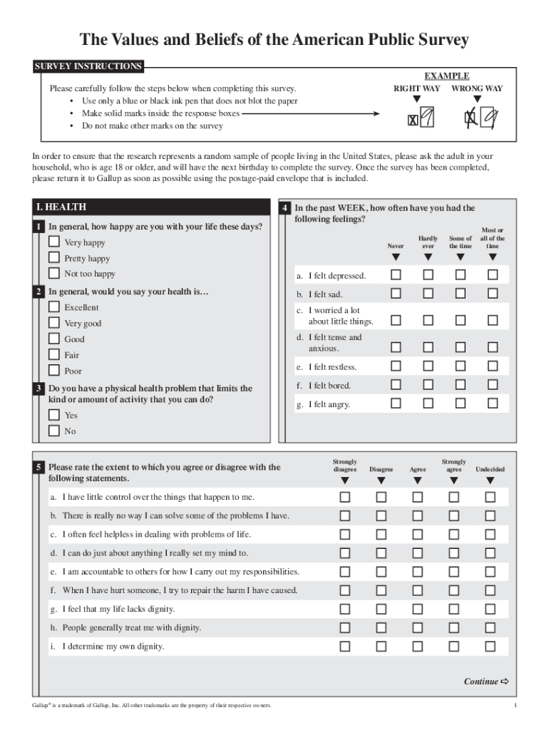 The Values and Beliefs of the American Public Survey INSTRUCTIONSEXAMPLEPlease carefully follow the steps below when completing this survey. Use only a blue or black ink pen that does not blot the