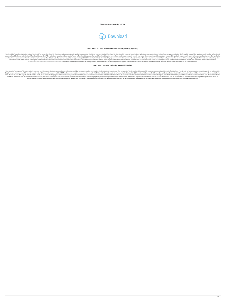 News Central Lite License Key Full X64News Central Lite Crack+ With Serial Key Free Download [Win/Mac] [April2022] News Central Lite Torrent Download is a free version of News Central. You may use
