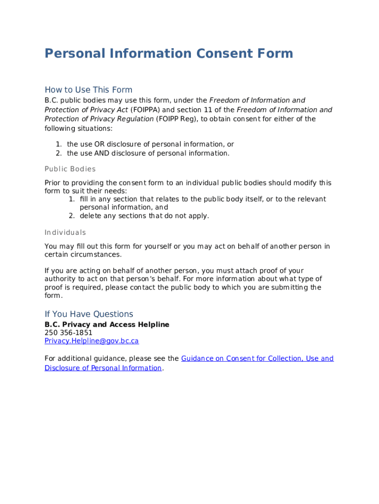 The Personal Ination Consent - Gov is a writable document needed to be submitted to the specific address in order to provide some information. It must be completed and signed, which may be done manually, or with the help of a particular solution such as PDFfiller. This tool allows to complete any PDF or Word document right in the web, customize it according to your requirements and put a legally-binding electronic signature. Right after completion, the user can easily send the Personal Ination Consent - Gov to the appropriate individual, or multiple individuals via email or fax. The editable template is printable too thanks to PDFfiller feature and options presented for printing out adjustment. Both in digital and physical appearance, your form will have got organized and professional appearance. Also you can turn it into a template to use later, so you don't need to create a new file from the beginning. You need just to amend the ready document.