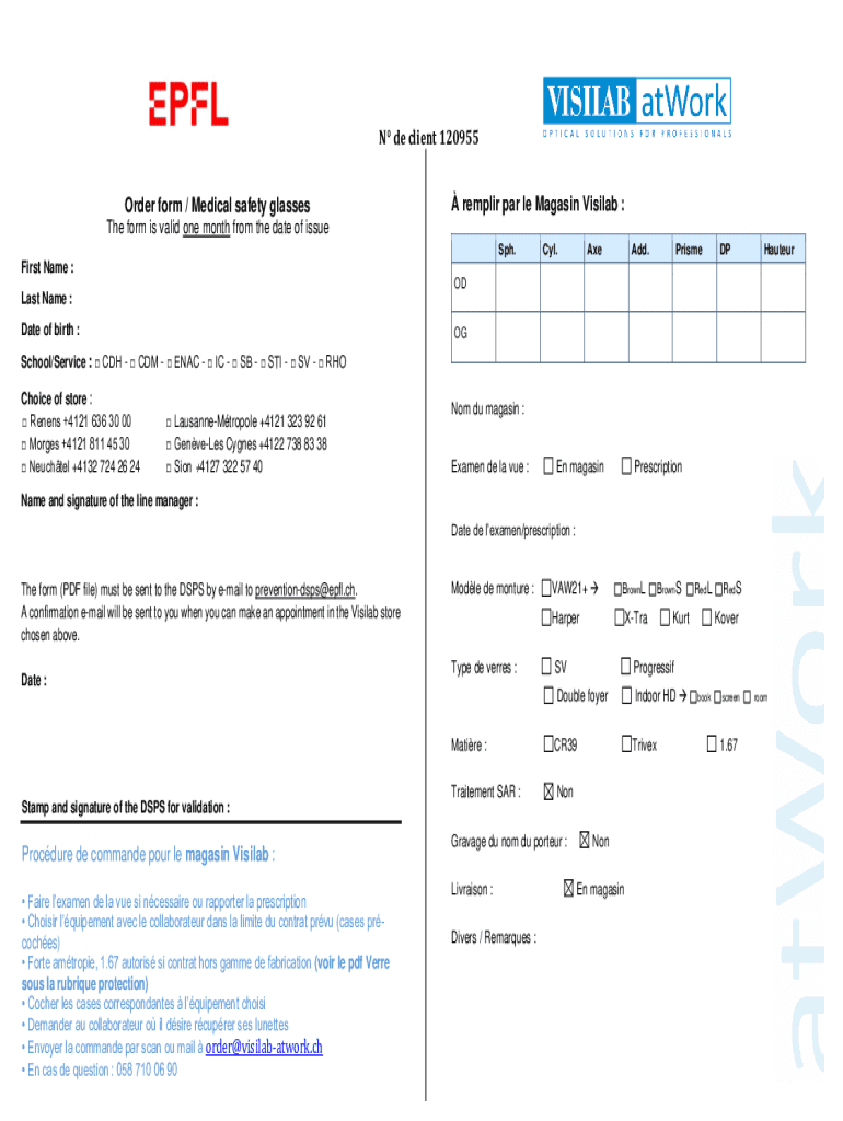Get the free N de client 120955 Order form / Medical safety glasses - EPFL