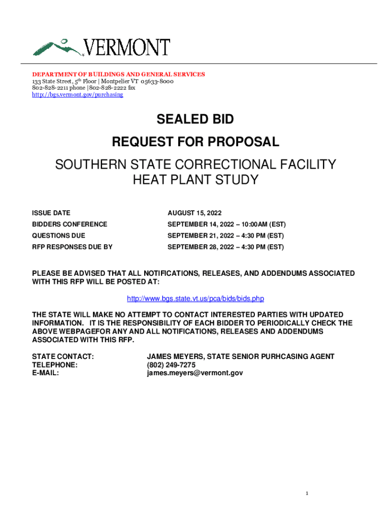 DEPARTMENT OF BUILDINGS AND GENERAL SERVICES 133 State Street, 5th Floor | Montpelier VT 056338000 8028282211 phone |8028282222 fax http://bgs.vermont.gov/purchasingSEALED BID REQUEST FOR PROPOSAL
