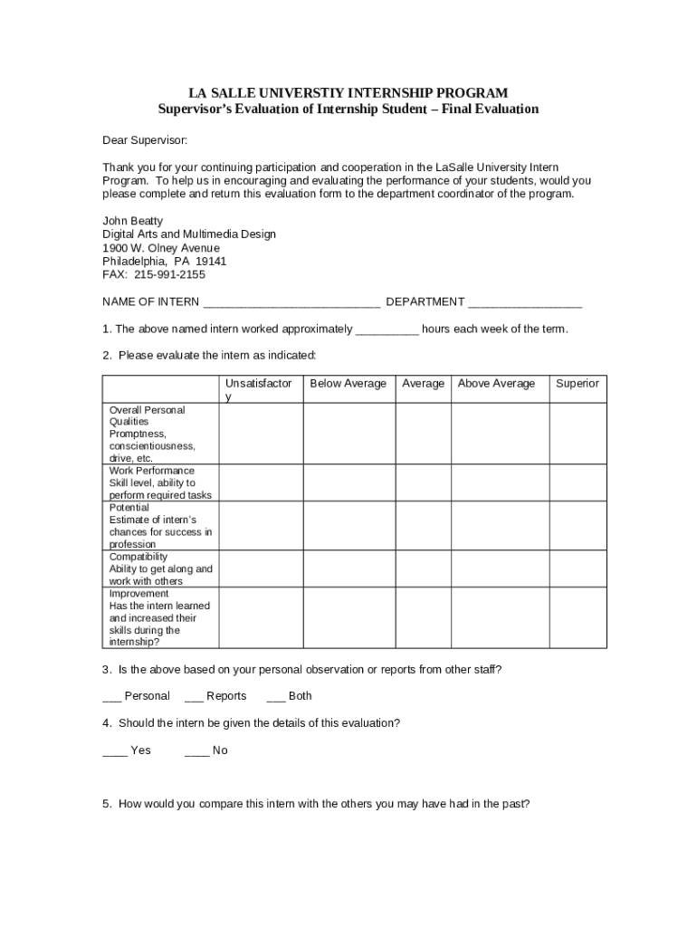 How should you fill out the SUPERVISOR EVALUATION OF STUDENT INTERN Student: Organization: Supervisor: template