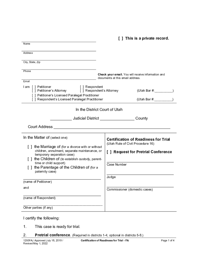 [ ] This is a private record. Name Address City, State, Zip Precheck your email. You will receive information and documents at this email address. Email am [[[[]]]]Petitioner [ ] Respondent Petitioners