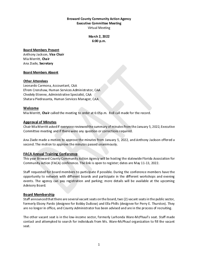 Broward County Community Action AgencyExecutive Committee MeetingVirtual Meeting