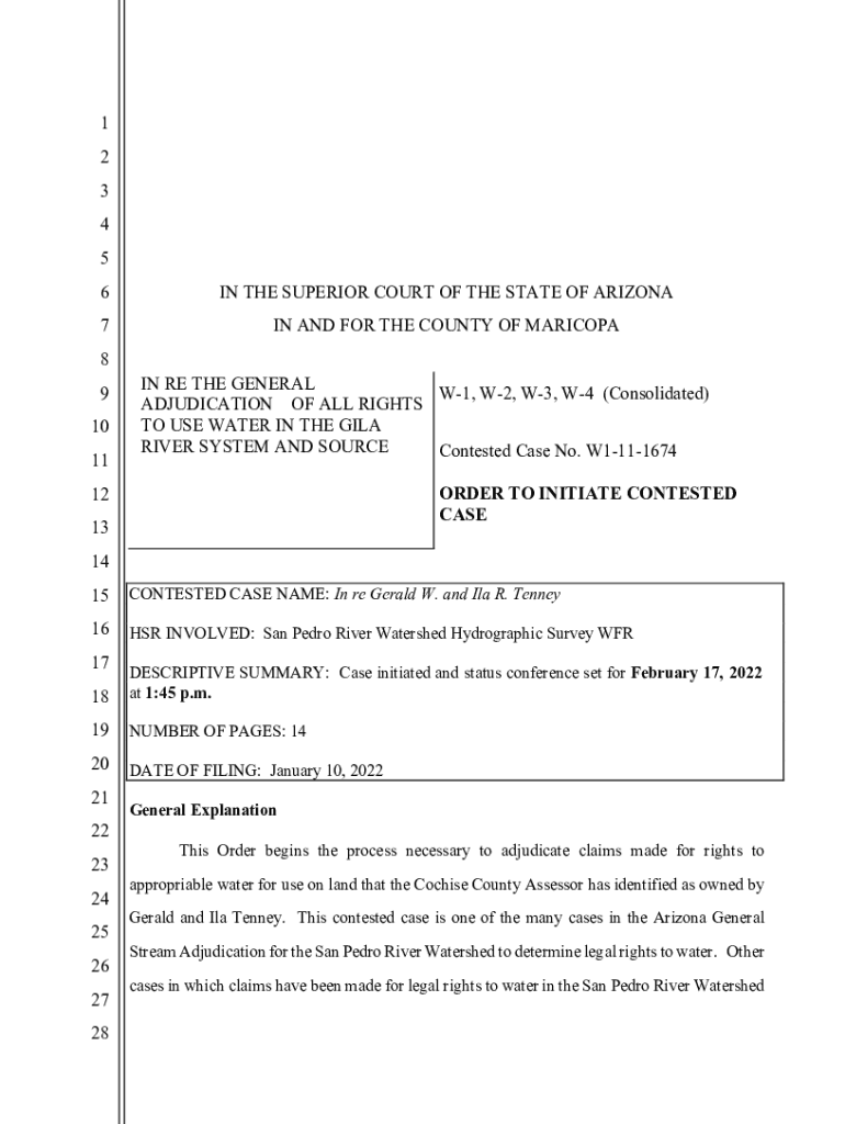 1 2 3 4 5 6IN THE SUPERIOR COURT OF THE STATE OF ARIZONA7IN AND FOR THE COUNTY OF MARICOPA8 9 10 11IN RE THE GENERAL W1, W2, W3, W4 (Consolidated) ADJUDICATION OF ALL RIGHTS TO USE WATER IN THE GILA