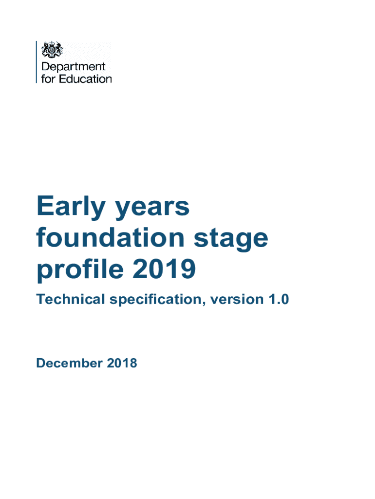 Early years foundation stage profile 2019 Technical specification, version 1.0December 2018Contents 1.2.3.4.5. Introduction41.1 Audience and purpose41.2 Scope41.3 Changes for 201951.4 Coverage and