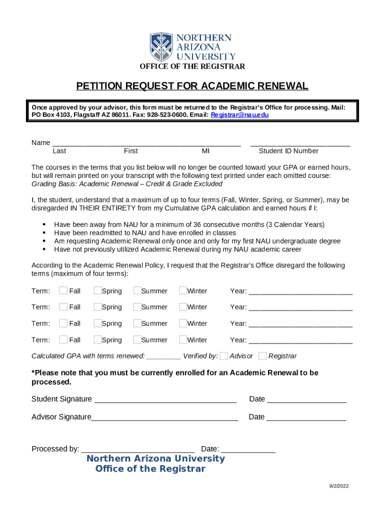 How to fill out nau.eduwp-contentuploadsPETITION REQUEST FOR ACADEMIC RENEWAL - nau.edu - home nau