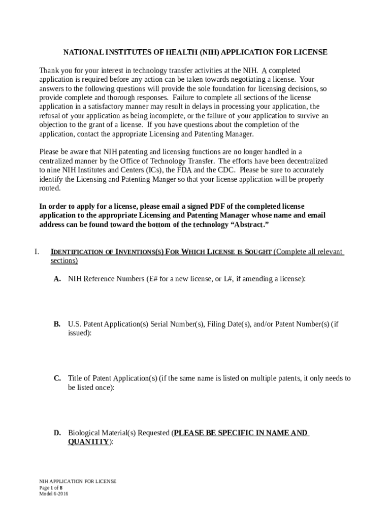 NIH License Application - National Institutes of Health template instructions
