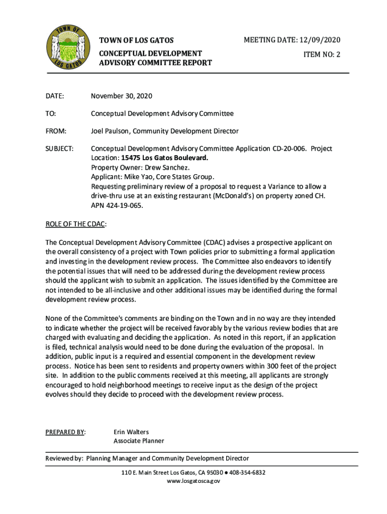 TOWN OF LOS GoToMeeting DATE: 12/09/2020CONCEPTUAL DEVELOPMENT ADVISORY COMMITTEE REPORTED NO: 2DATE:November 30, 2020TO:Conceptual Development Advisory CommitteeFROM:Joel Paulson, Community Development